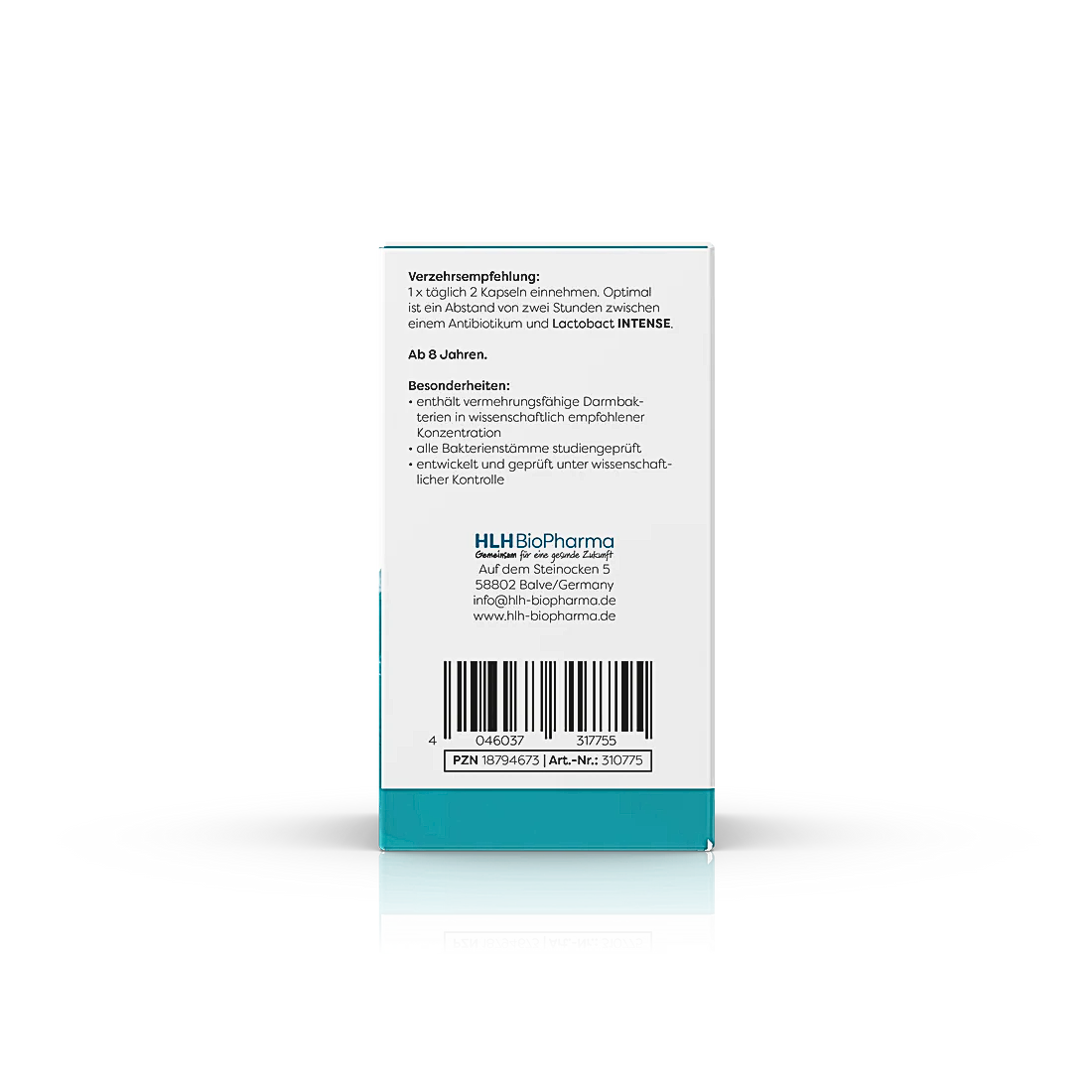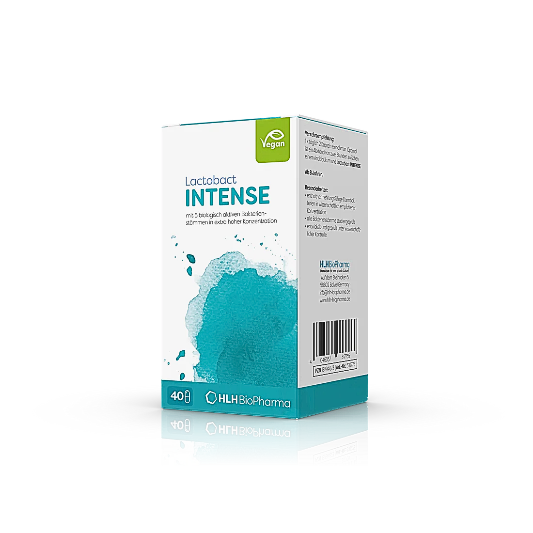 Lactobact INTENSE by HLH Pharma is a highly concentrated probiotic that provides valuable beneficial gut bacteria to the gut. Through innovative capsule technology, the bacteria it contains are protected from harmful stomach acid and reach the site of action in the intestine in a way that allows the bacteria to multiply.