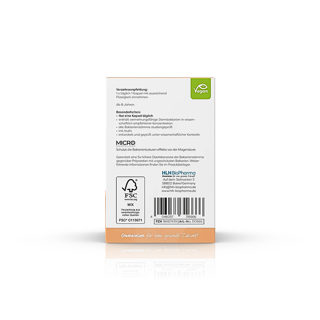 The probiotic microorganisms in Lactobact Premium are protected from harmful stomach acid at a microscopic level by microencapsulation, allowing them to pass into the intestines intact. This means that the survival rate of gut bacteria is five times higher.