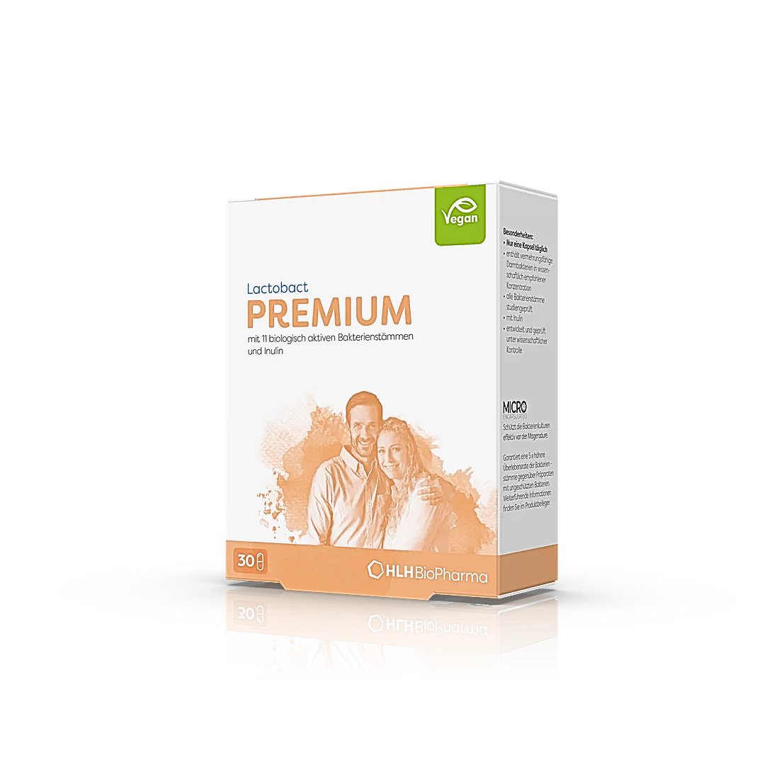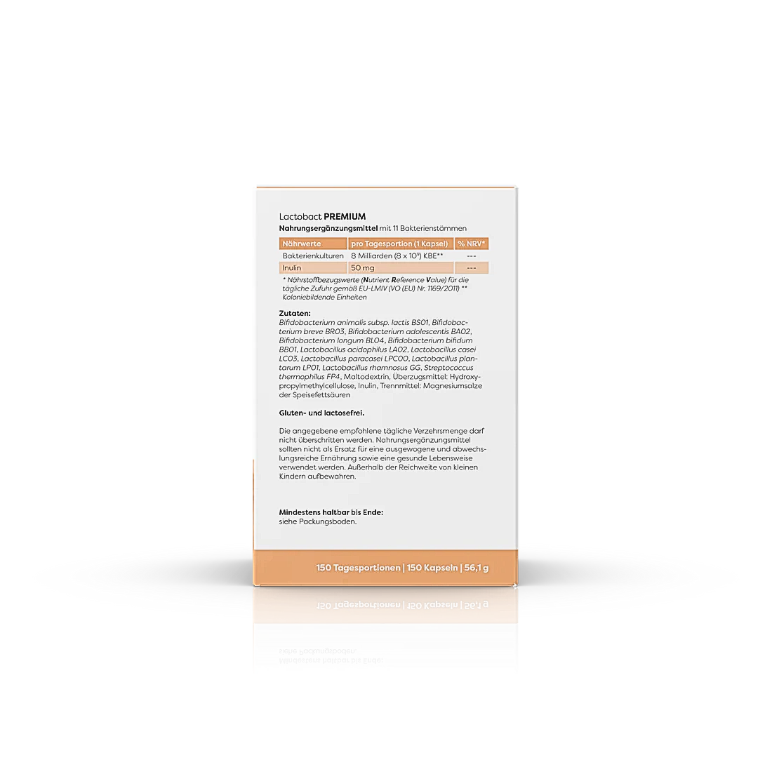 Laktobact Premium also contains the plant fiber inulin. It is obtained from the chicory plant and serves as food for your intestinal bacteria. The addition of inulin creates a particularly favorable environment for the proliferation of beneficial bacterial cultures.